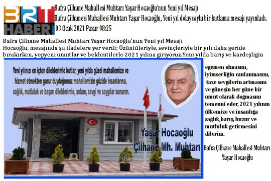 Hocaoğlu, mesajında şu ifadelere yer verdi; Üzüntüleriyle, sevinçleriyle bir yılı daha geride bırakırken, yepyeni umutlar ve beklentilerle 2021 yılına giriyoruz.Yeni yılda barış ve kardeşliğin egemen olmasını, iyimserliğin canlanmasını, taze sevgilerin artmasını ve güneşin her güne bir umut olarak doğmasını temenni eder, 2021 yılının ülkemize ve insanlığa sağlık,barış, huzur ve mutluluk getirmesini dilerim.